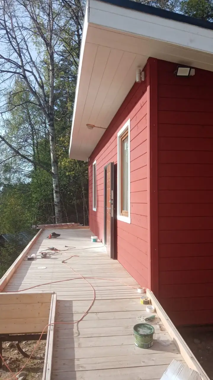 Здесь нужно спокойно подъехать, открыть дверь, сориентироваться, помочь ребёнку, не поскользнуться, не промокнуть, не бороться с погодой. В Карелии, где дождь, снег и сырость — не редкость, навес становится не украшением, а реальной защитой и частью продуманной среды.