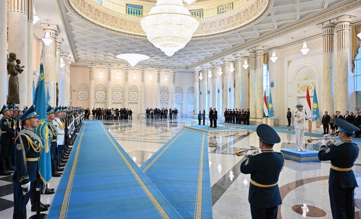 Переговорам предшествовала церемония торжественной встречи в резиденции Акорда. Начальник почётного караула отдал приветственный рапорт главам государств. После исполнения государственных гимнов Казахстана и Венгрии президенты проследовали в зал для проведения встречи в формате тет-а-тет.