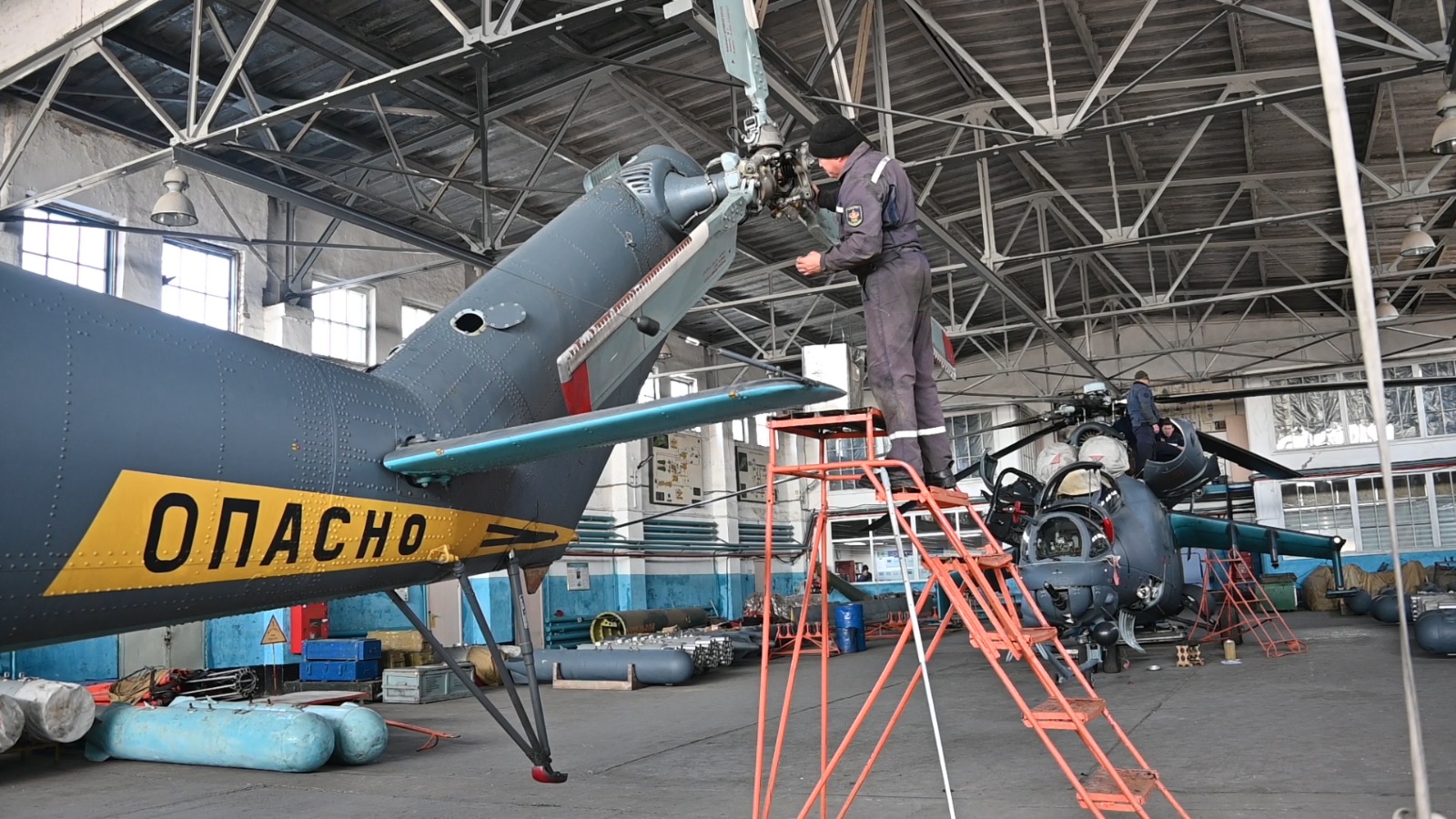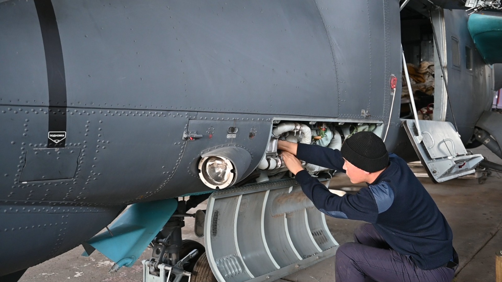 Личный состав воинской части также уделяет особое внимание работам по подготовке авиационной техники к зимнему сезону. В частности, проверяют двигатели, электрические системы и навигационные устройства вертолетов и регулируют в соответствии с климатическими условиями.