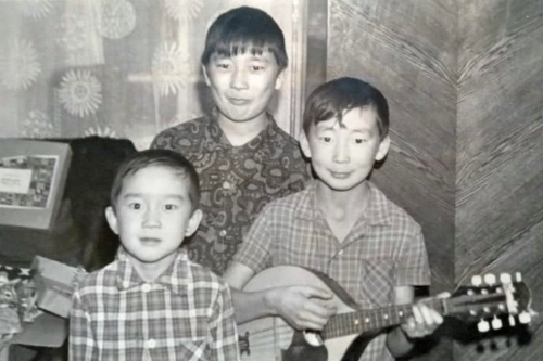 Детство Жанабая Шарипова. Джурун. С мандолиной его братишка Дархан, а рядом младший братишка Жайлхан.