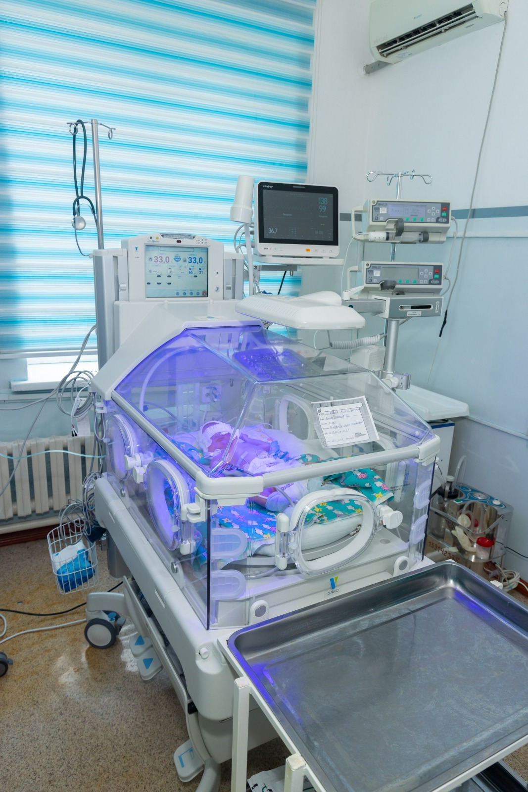 Отделение выхаживания новорождённых получило 22 единицы медицинской техники, включая 1 аппарат ИВЛ, 2 аппарата для неинвазивной вентиляции лёгких CPAP, 2 кувеза, 3 реанимационных столика, 4 монитора пациентов и 10 ламп фототерапии на общую сумму 143,7 миллиона тенге.