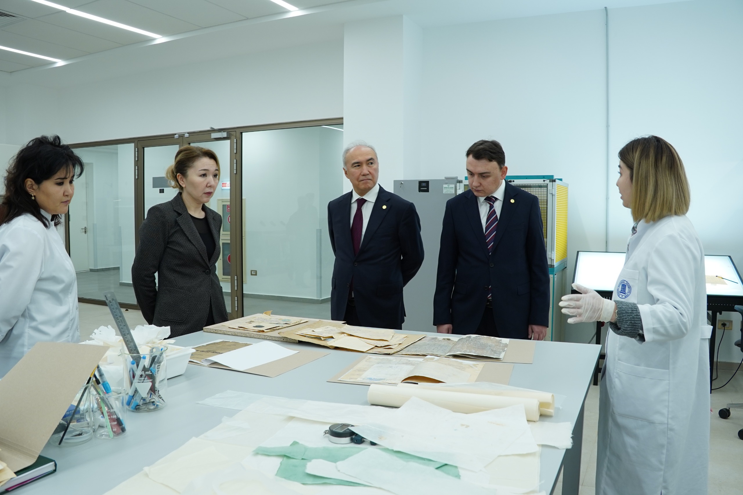 Отметим, что в рамках визита гостям была проведена экскурсия по Архиву. Они ознакомились с деятельностью учреждения, посетили читальный и выставочный залы, а также а также современные лаборатории, где выполняются реставрационные и технологические работы.