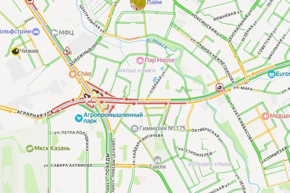 Сложная ситуация наблюдается на развязке Мамадышского тракта. Там собирается пробка на разворотах из-за аварии в сторону выезда из города.