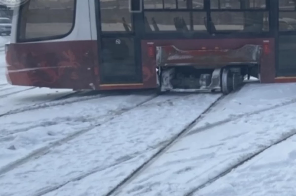 Сообщается, что трамвай потерял управление на круговом движении в районе ТЭЦ.