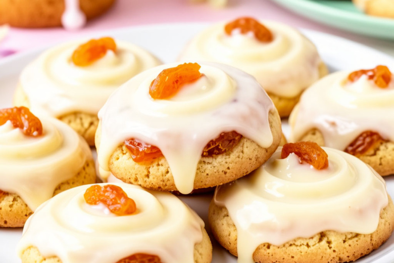 Для глазури смешайте пудру с лимонным соком, постепенно добавляя молоко до густой консистенции. Нанесите глазурь на печенье, сверху положите кусочки кураги. Это печенье — идеальный пасхальный десерт к чаю.